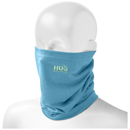 High quality, multifunctional snood, made of a soft and comfortable 100% certified recycled polyester. GRS certification ensures a 100% certified supply chain. This snood, or tube scarf, is a customizable multifunctional item: face covering, scarf, collar, neck warmer, scarf, hood, hat, bandana. Use it to mask your face in public or as a multi-use snood for outdoor activities. The wash-and-wear material keeps it looking new, even after repeated washing. With multiple ways to wear it, it may be t
