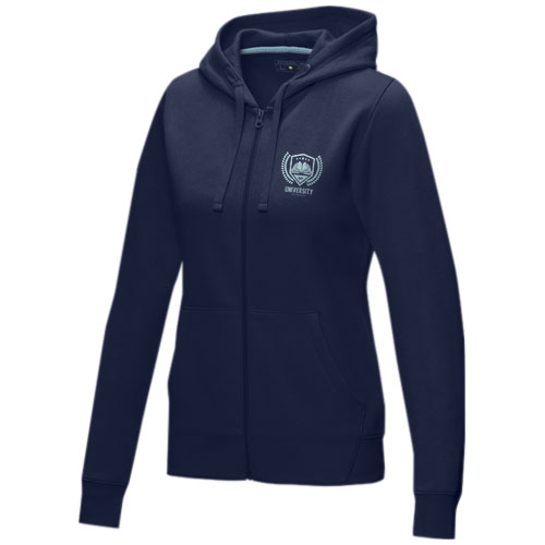 Przyjazna dla środowiska odzież promocyjna. Zamek błyskawiczny z certyfikatem GRS. Sznurek w kapturze z certyfikatem GOTS. Dopasowana talia dla lepszego wyglądu. Kieszeń kangurka. Meszek po wewnętrznej stronie. Mankiety z płaskiej dzianiny ściągaczowej. Płaski splot ściągaczowy na dole. Dwukolorowa taśma wzmacniająca w kołnierzyku z brandingiem. Półksiężyc. Metka wdrukowana transferem dla lepszego komfortu.
