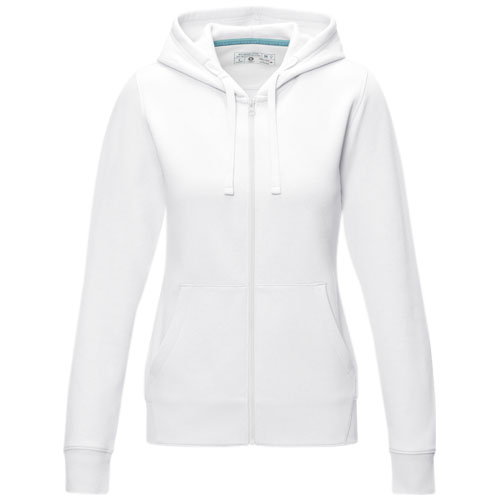 Przyjazna dla środowiska odzież promocyjna. Zamek błyskawiczny z certyfikatem GRS. Sznurek w kapturze z certyfikatem GOTS. Dopasowana talia dla lepszego wyglądu. Kieszeń kangurka. Meszek po wewnętrznej stronie. Mankiety z płaskiej dzianiny ściągaczowej. Płaski splot ściągaczowy na dole. Dwukolorowa taśma wzmacniająca w kołnierzyku z brandingiem. Półksiężyc. Metka wdrukowana transferem dla lepszego komfortu.
