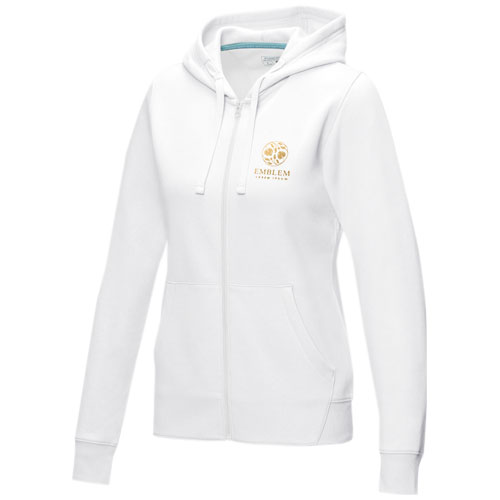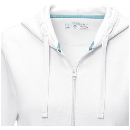 Przyjazna dla środowiska odzież promocyjna. Zamek błyskawiczny z certyfikatem GRS. Sznurek w kapturze z certyfikatem GOTS. Dopasowana talia dla lepszego wyglądu. Kieszeń kangurka. Meszek po wewnętrznej stronie. Mankiety z płaskiej dzianiny ściągaczowej. Płaski splot ściągaczowy na dole. Dwukolorowa taśma wzmacniająca w kołnierzyku z brandingiem. Półksiężyc. Metka wdrukowana transferem dla lepszego komfortu.