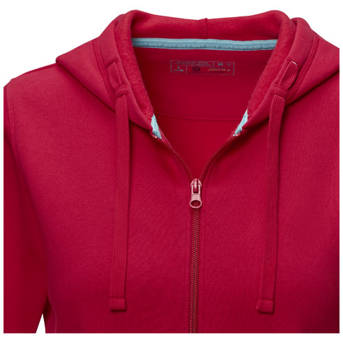 Przyjazna dla środowiska odzież promocyjna. Zamek błyskawiczny z certyfikatem GRS. Sznurek w kapturze z certyfikatem GOTS. Dopasowana talia dla lepszego wyglądu. Kieszeń kangurka. Meszek po wewnętrznej stronie. Mankiety z płaskiej dzianiny ściągaczowej. Płaski splot ściągaczowy na dole. Dwukolorowa taśma wzmacniająca w kołnierzyku z brandingiem. Półksiężyc. Metka wdrukowana transferem dla lepszego komfortu.