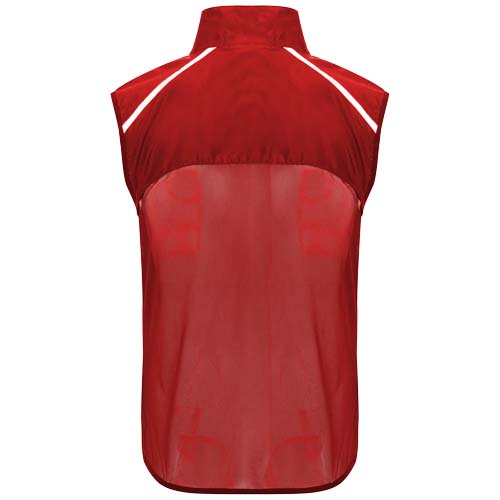 Wiatroszczelny i oddychający. Zamek błyskawiczny z przodu z dopasowaną ochroną podbródka. Elastyczne wiązanie pod pachami i u dołu. Dolna część pleców z mikroperforowanego materiału. Dobrze widoczne detale na górze, z przodu i z tyłu. Kieszeń z elastycznym paskiem do przechowywania kamizelki i noszenia jej na nadgarstku. Usuwalna etykieta.