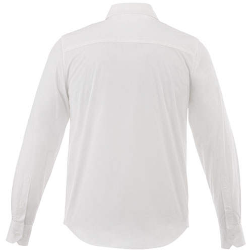 Kołnierzyk button down z ukrytymi guzikami. Elastyczny materiał. Regulowany mankiet z pojedynczą plisą. Satynowa lamówka wewnątrz na karku. Guziki z wygrawerowanym logo w kolorze materiału. Metka wdrukowana transferem dla lepszego komfortu.