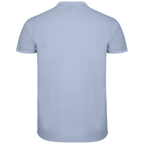 Męska koszulka polo z krótkim rękawem. Wzmocnione kryte szwy w wewnętrznym kołnierzyku. Prążkowane mankiety i kołnierzyk 1x1. Szwy boczne. Zapięcie na 3 guziki i boczne rozcięcia. Opcjonalna kieszeń. Usuwalna metka.