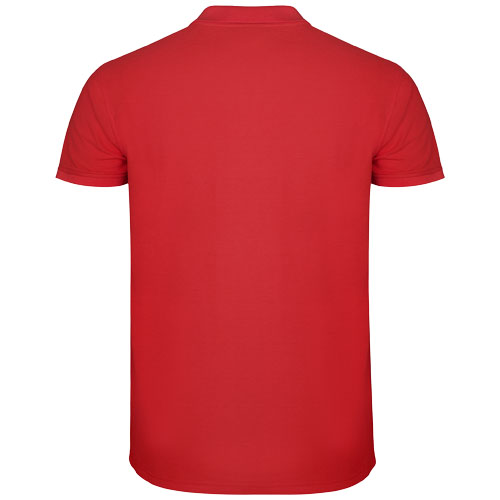 Męska koszulka polo z krótkim rękawem. Wzmocnione kryte szwy w wewnętrznym kołnierzyku. Prążkowane mankiety i kołnierzyk 1x1. Szwy boczne. Zapięcie na 3 guziki i boczne rozcięcia. Opcjonalna kieszeń. Usuwalna metka.