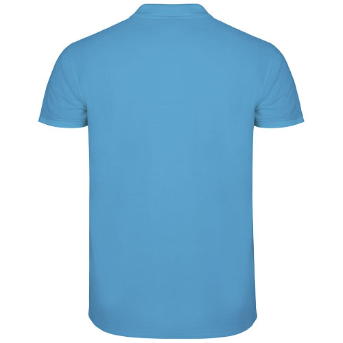 Męska koszulka polo z krótkim rękawem. Wzmocnione kryte szwy w wewnętrznym kołnierzyku. Prążkowane mankiety i kołnierzyk 1x1. Szwy boczne. Zapięcie na 3 guziki i boczne rozcięcia. Opcjonalna kieszeń. Usuwalna metka.