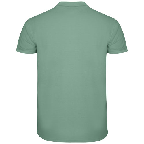 Męska koszulka polo z krótkim rękawem. Wzmocnione kryte szwy w wewnętrznym kołnierzyku. Prążkowane mankiety i kołnierzyk 1x1. Szwy boczne. Zapięcie na 3 guziki i boczne rozcięcia. Opcjonalna kieszeń. Usuwalna metka.