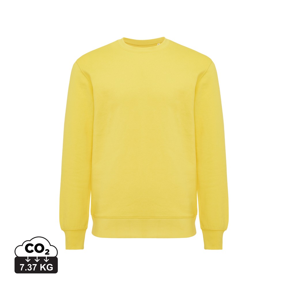 Lekki sweter, unisex, regularny krój, okrągły dekolt, długie rękawy, wykonana w 30% z bawełny z recyklingu i w 70% z bawełny organicznej o gramaturze 280 g/m2, posiada wbudowany znacznik AWARE™, który potwierdza wykorzystanie materiałów z recyklingu, posiada kod QR na metce, który prowadzi do cyfrowego paszportu produktu, 2% wpływów z każdego sprzedanego produktu z kolekcji Impact jest przekazywane na rzecz Water.org, ślad węglowy produktu: 7,04 kg CO2