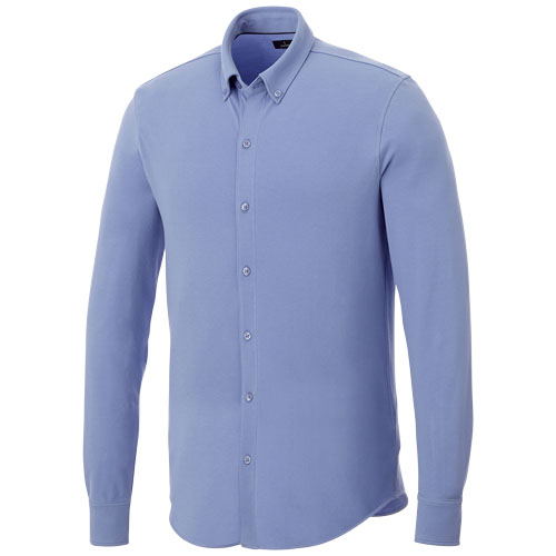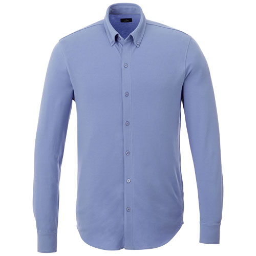 Kołnierzyk z tego samego materiału . Elastyczny materiał. Regulowany mankiet z pojedynczą plisą. Kołnierzyk button-down. Satynowa lamówka wewnątrz na karku. Guziki z wygrawerowanym logo w kolorze materiału. Tkana metka.