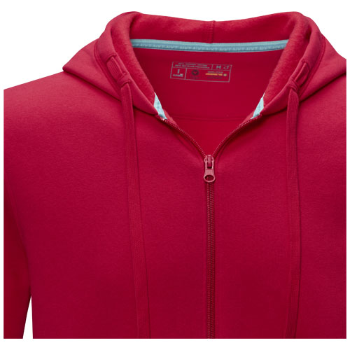 Przyjazna dla środowiska odzież promocyjna Zamek błyskawiczny z certyfikatem GRS. Sznurek w kapturze z certyfikatem GOTS. Kieszeń kangurka. Meszek po wewnętrznej stronie. Mankiety z płaskiej dzianiny ściągaczowej. Płaski splot ściągaczowy na dole. Dwukolorowa taśma wzmacniająca w kołnierzyku z brandingiem. Półksiężyc. Metka wdrukowana transferem dla lepszego komfortu.