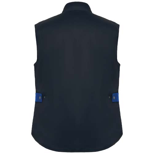 Kamizelka robocza z wieloma kieszeniami, w dwukolorowej kombinacji, z wysokim kołnierzem. Zamek błyskawiczny z przodu z zapięciem na rzep. Mankiety nieprzepuszczające wiatru. Zewnętrzna kieszeń na telefon z prawej strony, z klapką i zapięciem na rzep. Dwie przednie kieszenie z plisami, zapinane na rzep. Dwie kieszenie na długopisy. Wewnętrzna kieszeń z zapięciem na rzep. Kieszeń zapinana na zamek błyskawiczny. Dłuższy tył. Automatyczny regulator. Kontrastujące elementy na ramio