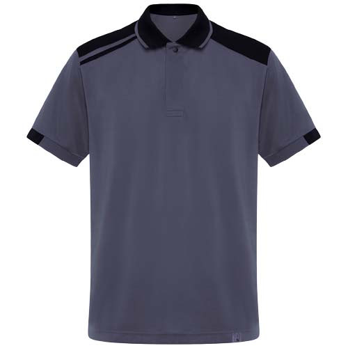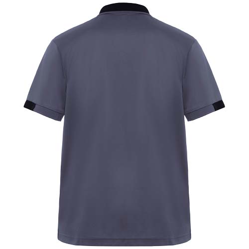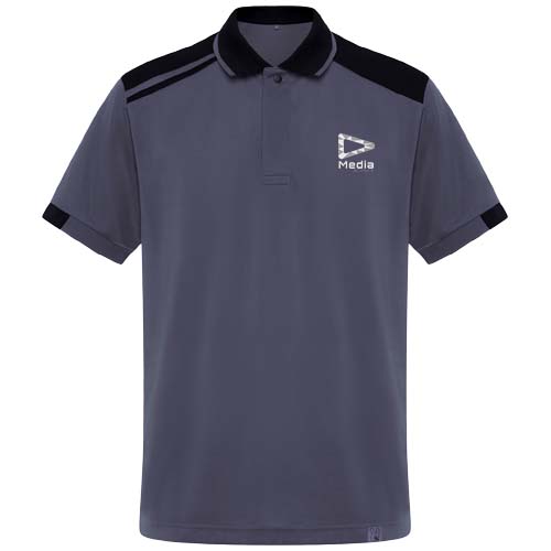 Antybakteryjna koszulka polo unisex z krótkim rękawem i kolorowym wzorem. Kołnierzyk i półrękaw wykończone ściągaczem 1x1. Wzmocnione kryte szwy w kołnierzu. Zapięcie na 2 guziki. Kontrastujące ramiona i detale. Rozcięcia po bokach na dole. Opcjonalna kieszeń.