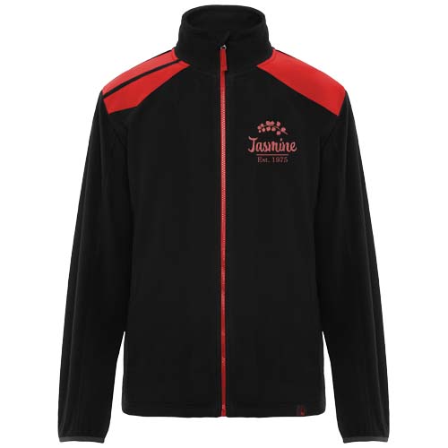 Kurtka z mikropolaru w kombinacji kolorystycznej. Wysoki kołnierz i kontrastowy wtryskiwany zamek błyskawiczny. Kontrastujące ramiona i detale. Boczne kieszenie zapinane na zamek błyskawiczny. Elastyczne mankiety i regulatory po bokach u dołu.