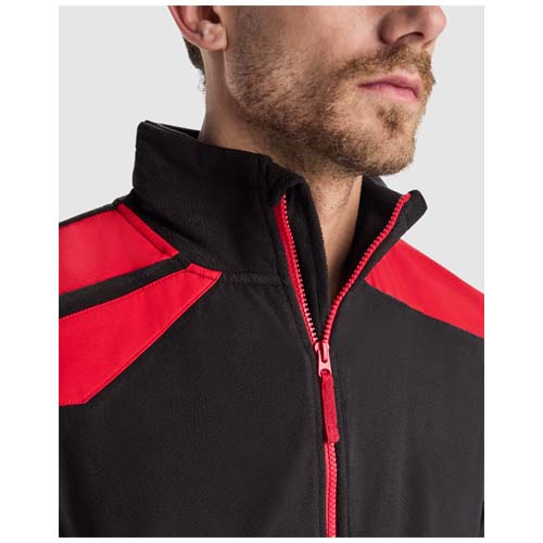Kurtka z mikropolaru w kombinacji kolorystycznej. Wysoki kołnierz i kontrastowy wtryskiwany zamek błyskawiczny. Kontrastujące ramiona i detale. Boczne kieszenie zapinane na zamek błyskawiczny. Elastyczne mankiety i regulatory po bokach u dołu.