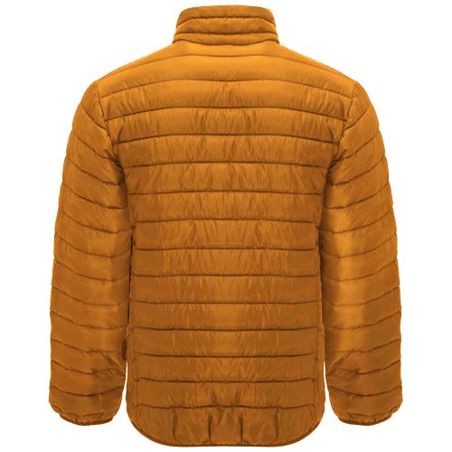 Męska kurtka pikowana z wypełnieniem imitującym w dotyku pierze. Odwrócone zamki błyskawiczne z dopasowanym ochraniaczem podbródka i ściągaczem. Dwie przednie kieszenie z zamkami błyskawicznymi. Dopasowana elastyczna lamówka w kołnierzu, mankietach i u dołu. Kontrastowa podszewka wewnętrzna. W zestawie torba transportowa. Lekka i składana odzież. Usuwalna metka. Wodoodporna. Wiatroszczelna.