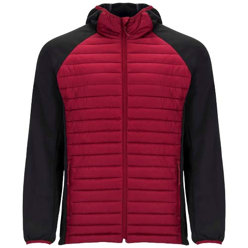 Męska kurtka z kombinacji dwóch materiałów: Regulowany kaptur. Raglanowe rękawy. Rękawy, panele boczne i kaptur z materiału softshell. Pikowany materiał przypominający w dotyku pierze z przodu i z tyłu. Odwrócony zamek błyskawiczny z pasującym ochraniaczem podbródka i ściągaczem. Dwie przednie kieszenie z zamkami błyskawicznymi. Dopasowane elastyczne wykończenie kołnierza, mankietów i dołu bluzy. Usuwalna metka. Model wiatroszczelny.
