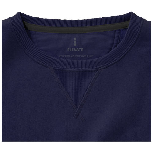Okrągły kołnierzyk. Wstawka w kształcie V pod kołnierzykiem z płaskiej dzianiny ściągaczowej. Materiał czesany od wewnątrz. Kołnierzyk z płaskiego splotu. Mankiety z płaskiej dzianiny ściągaczowej . Płaski splot sciągaczowy na dole. Taśma wzmacniająca od ramienia do ramienia. Półksiężyc. Metka wdrukowana transferem dla lepszego komfortu.