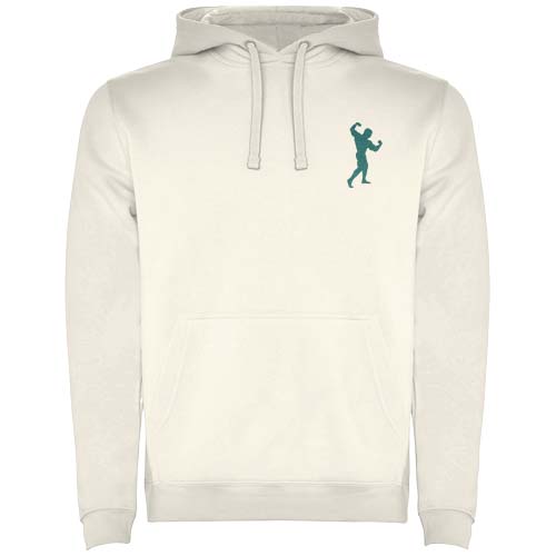 Dwukolorowa bluza z kapturem z podwójnego materiału, kontrastowym regulowanym sznurkiem, wzmocnionymi krytymi szwami w kołnierzu i kieszenią typu kangurka. Ściągacze 1x1 z elastanu w mankietach i pasie. Usuwalna metka.