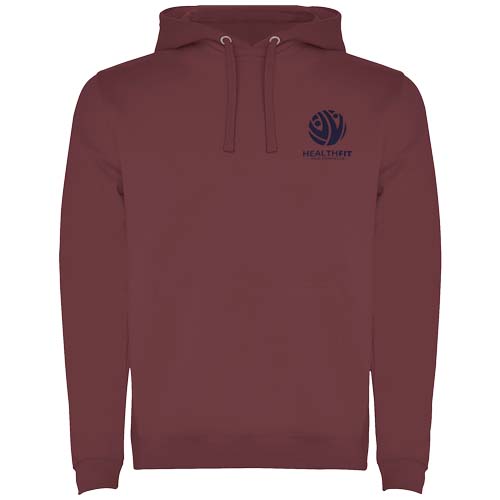 Dwukolorowa bluza z kapturem z podwójnego materiału, kontrastowym regulowanym sznurkiem, wzmocnionymi krytymi szwami w kołnierzu i kieszenią typu kangurka. Ściągacze 1x1 z elastanu w mankietach i pasie. Usuwalna metka.