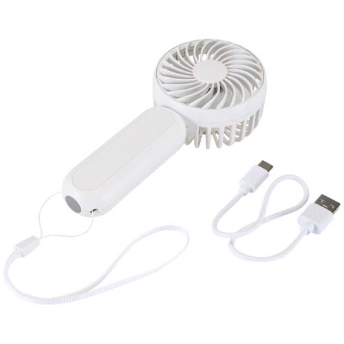 Ten przenośny mini wentylator, wykonany z tworzyw sztucznych pochodzących z recyklingu, oferuje trzy prędkości chłodzenia i charakteryzuje się kompaktową, wygodną w podróży konstrukcją. Idealny na imprezy plenerowe, do klubów, na festiwale lub w upalne i wilgotne dni – zapewnia szybkie i wygodne ochłodzenie w ruchu, dzięki czemu staje się praktycznym letnim niezbędnikiem zarówno na co dzień, jak i w podróży. Wentylator pracuje przez 3 godziny (niska prędkość), 2 godziny