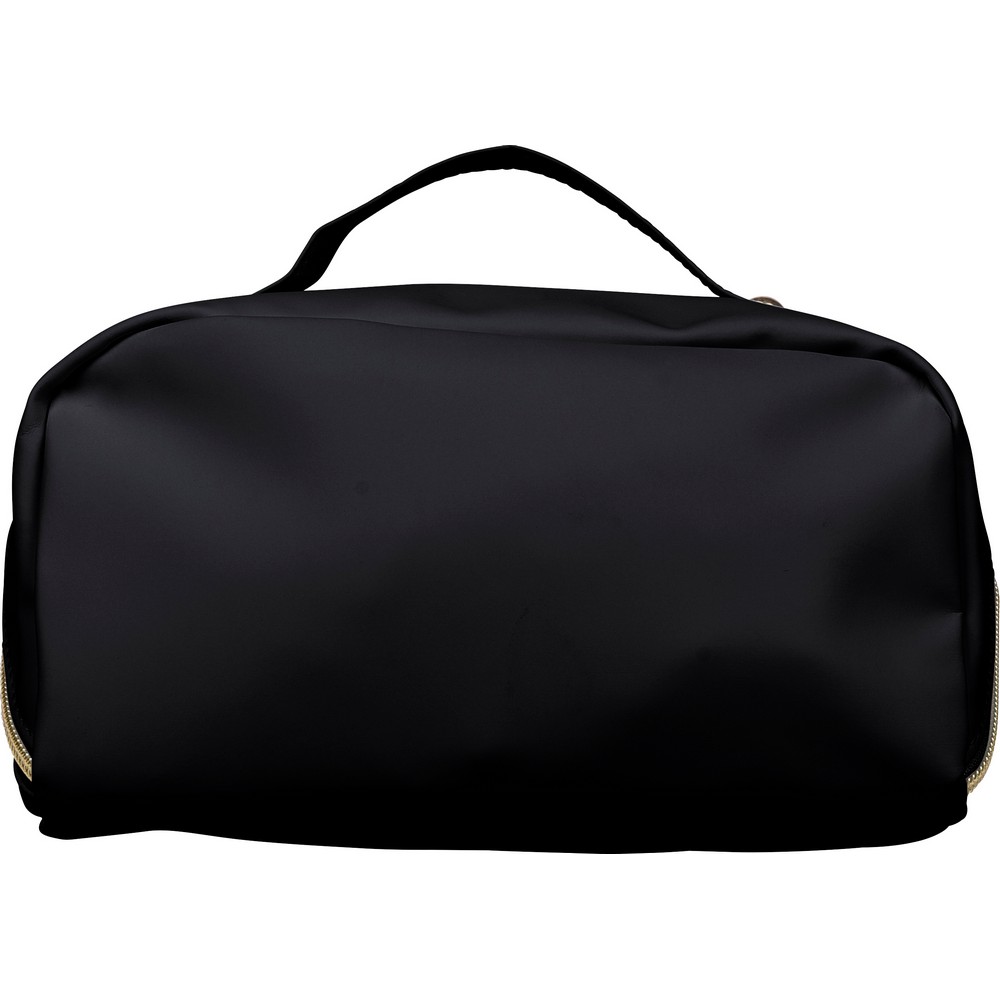 Kosmetyczka zapinana na zamek, krótki uchwyt do noszenia, podszewka z poliestru 210D w środku, duża kieszeń zapinana na zamek, w środku mała kieszeń zapinana na zamek ikona recyklingu na metce, produkt wykonany z PU z recyklingu i poliestru