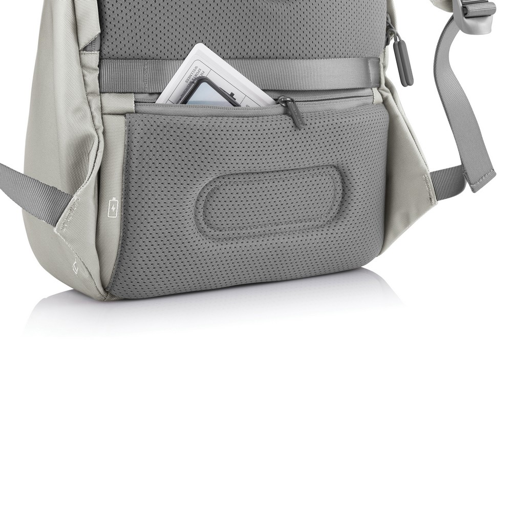 Plecak chroniący przed kieszonkowcami Bobby Soft, wodoodporny materiał, wykonany z przyjaznego środowisku materiału RPET, ukryte zamki i kieszenie, kieszenie z ochroną RFID, przestronna przegroda główna z kieszeniami wewnątrz i miękką przegrodą na laptopa do 15,6", zintegrowany port USB do ładowania telefonów (power-bank nie jest dołączony), rozszerzalna górna część plecaka