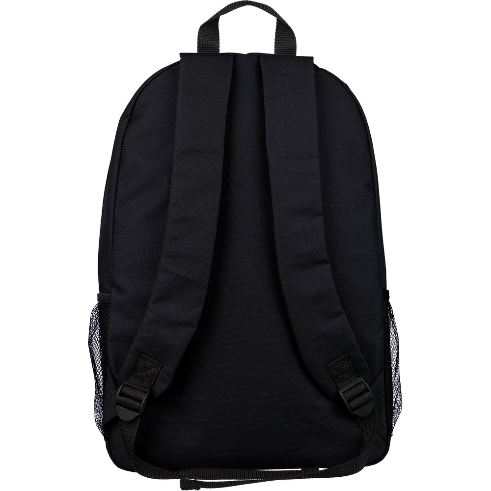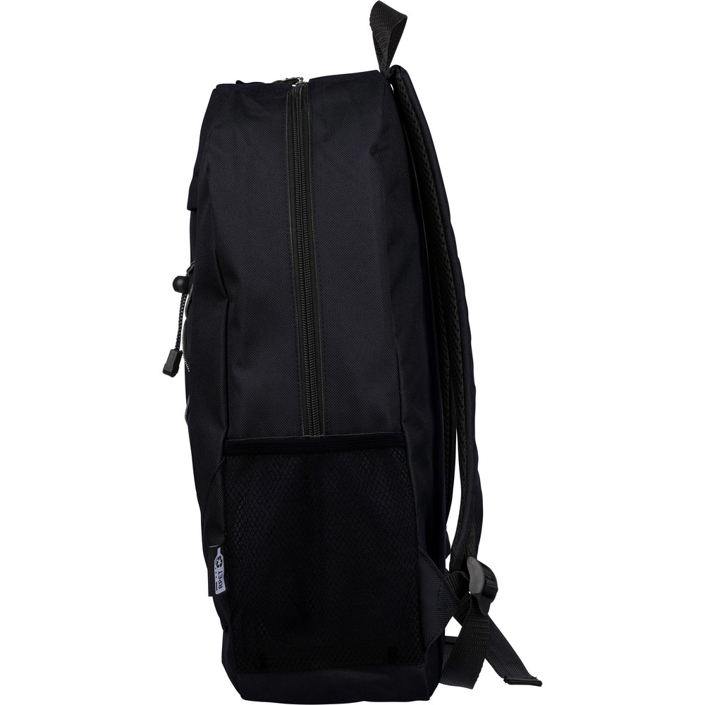 Plecak podróżny, siatkowate kieszenie po obu stronach, elastyczne sznurki z przodu do przymocowania butelki albo koca, zaciskane zamknięcie, mała kieszeń zapinana na zamek z przodu, kieszeń główna zapinana na zamek, ikona RPET na metce, produkt wykonany z RPET, poliestru i elastanu