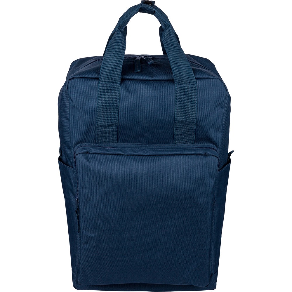Plecak, podszewka z poliestru 210D, główna kieszeń zapinana na zamek, wewnętrzna przegroda na laptopa 16", mniejsza przednia kieszeń zapinana na zamek, regulowane i wentylowane paski do noszenia, pasek do przymocowania do walizki, kieszenie boczne po obu stronach, produkt wykonany z poliestru 600D z recyklingu