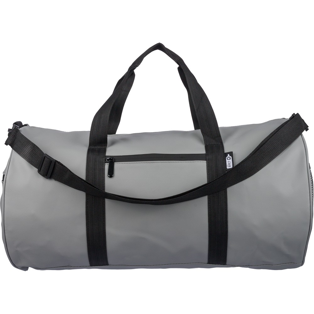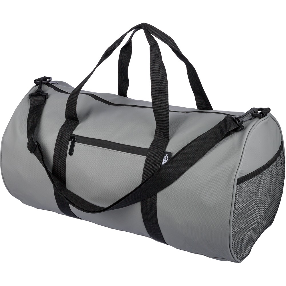 Torba sportowa, podróżna o pojemności 40 litrów, podszewka z poliestru 210D, powłoka wodoodporna, główna kieszeń zapinana na zamek, mała przednia kieszeń zapinana na zamek, kieszeń boczna zapinana na zamek, kieszeń boczna z siatką, dwa uchwyty do noszenia, posiada długi pasek umożliwiający noszenie na ramieniu, ikona RPET na metce, produkt wykonany z RPET 600D i PU
