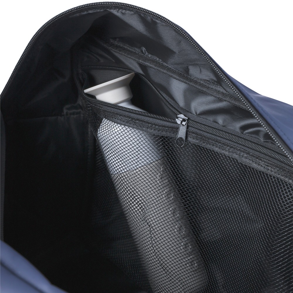 Torba sportowa, podróżna o pojemności 35 litrów, długie uchwyty do noszenia na ramieniu (2,5 × 108 cm) z zapięciem na rzep, regulowany pasek na ramię (3,9 × 130 cm), mała przednia kieszeń zapinana na zamek, duża główna komora zapinana na zamek, ikona recyklingu na metce, produkt wykonany z PU z recyklingu z podszewką z recyklingowego poliestru 210D