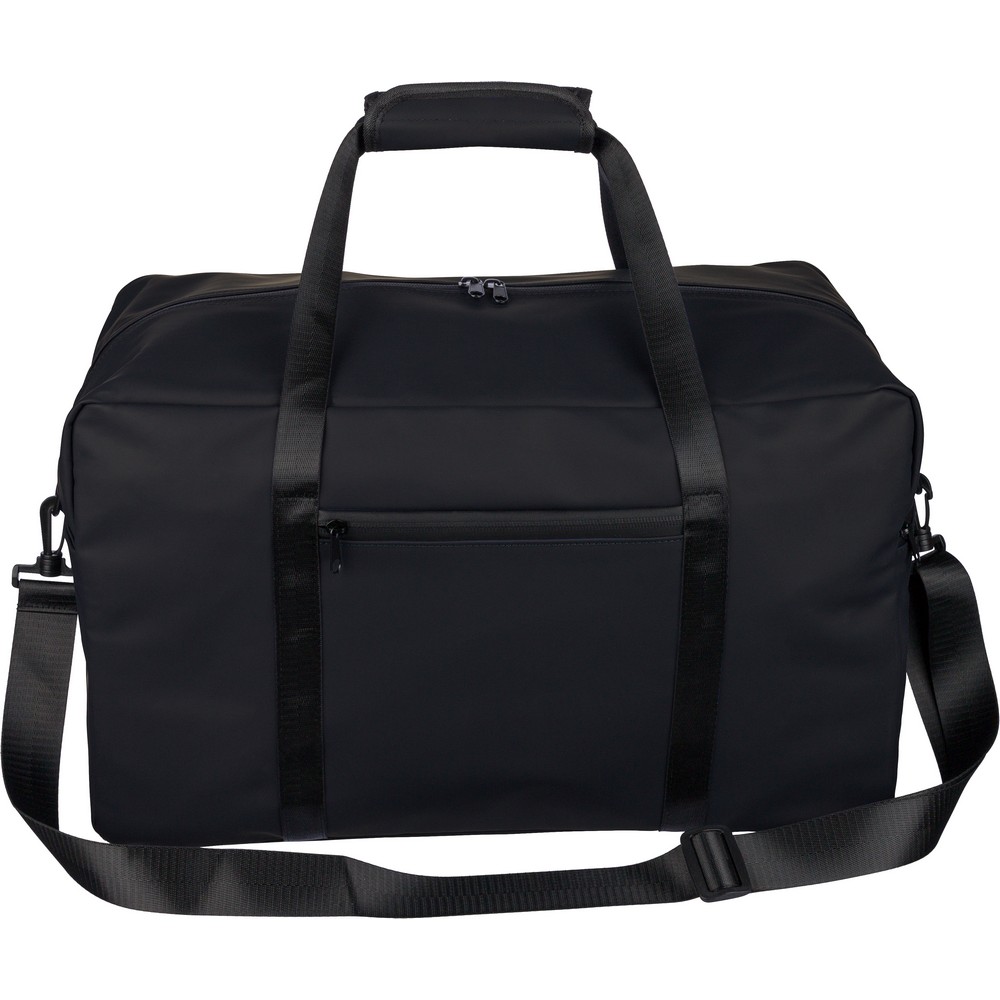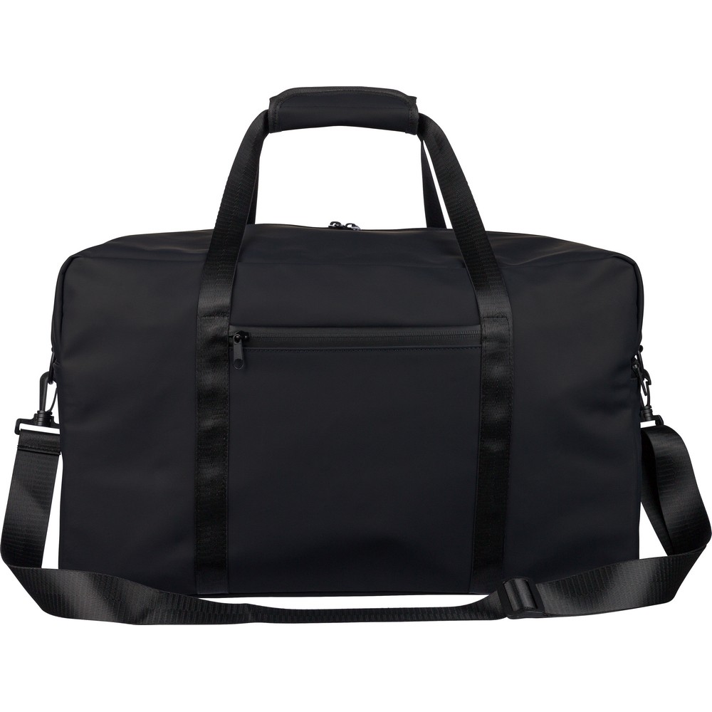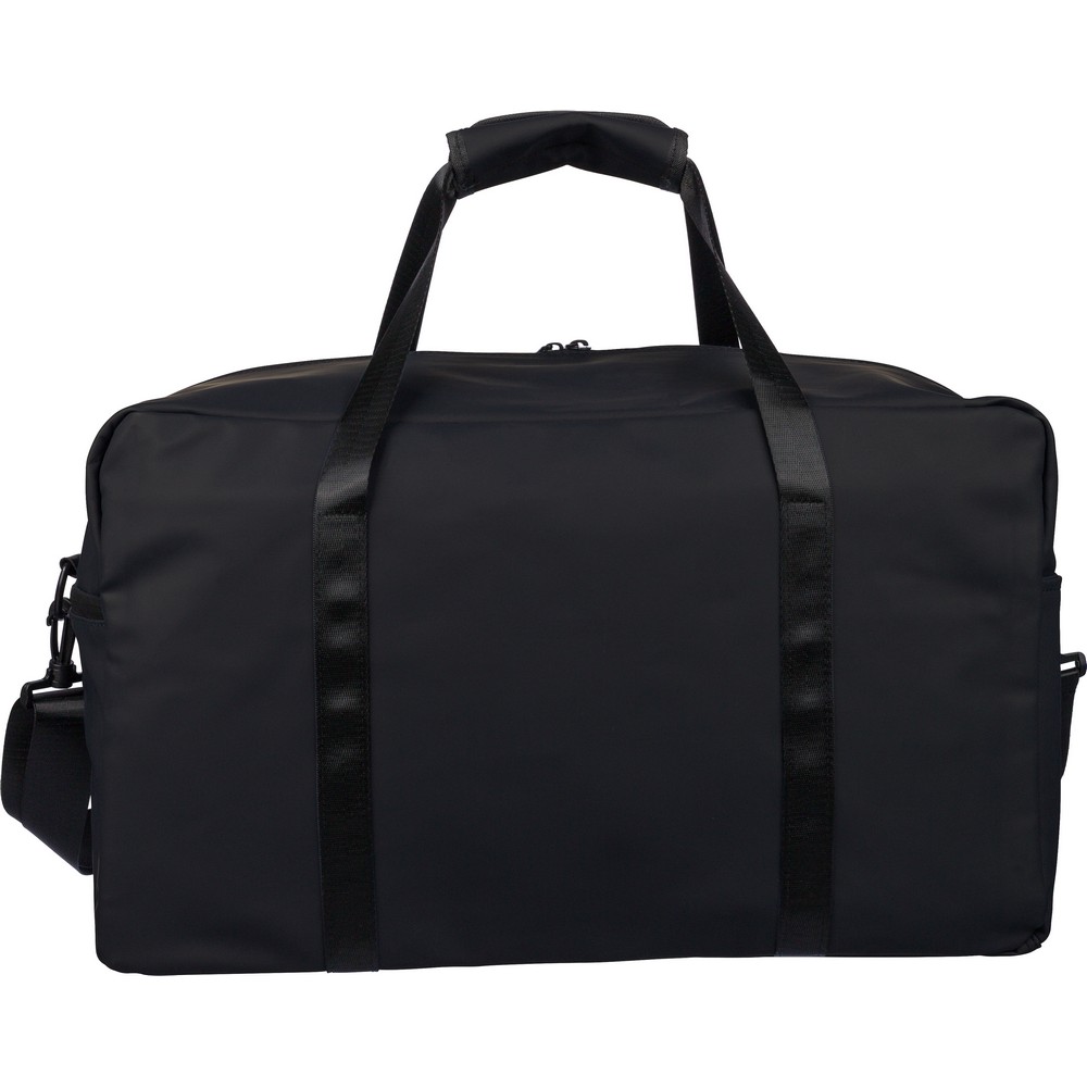 Torba sportowa, podróżna o pojemności 35 litrów, długie uchwyty do noszenia na ramieniu (2,5 × 108 cm) z zapięciem na rzep, regulowany pasek na ramię (3,9 × 130 cm), mała przednia kieszeń zapinana na zamek, duża główna komora zapinana na zamek, ikona recyklingu na metce, produkt wykonany z PU z recyklingu z podszewką z recyklingowego poliestru 210D
