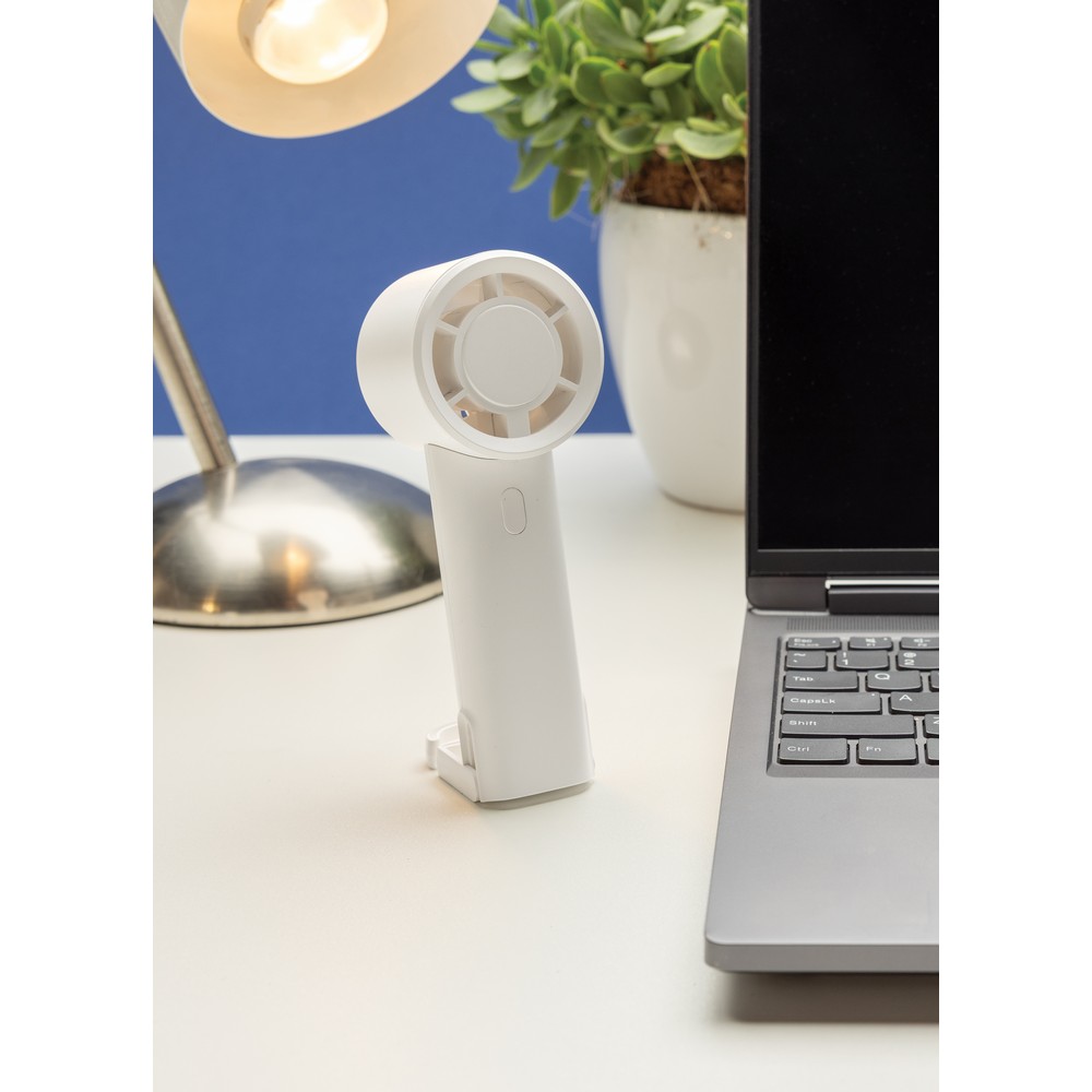 Wentylator kieszonkowy, wykonany z ABS z recyklingu, do 6 godzin działania na jednym ładowaniu, kabel w komplecie, całkowita zawartość materiałów z recyklingu obliczona na podstawie masy całkowitej produktu: 35%