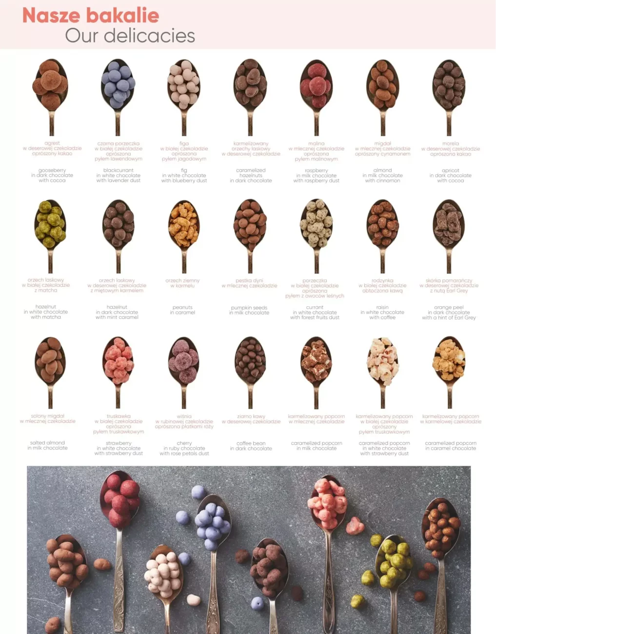 Migdały w mlecznej czekoladzie (33% kakao) delikatnie oprószone cynamonem oraz rodzynki w białej czekoladzie (27% masła kakaowego) z aromatyczną kawą Pluton to wyjątkowe połączenie smaków. Idealne jako elegancki upominek lub słodka przekąska dla miłośników wyrafinowanych, świątecznych słodkości.