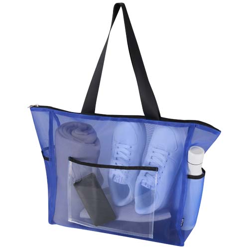 Ta pojemna torba o pojemności 23 litrów, wykonana z siatki z poliestru pochodzącego z recyklingu, stanowi bardziej ekologiczny wybór bez uszczerbku dla praktyczności. Torba wyposażona jest w bezpieczną główną komorę zapinaną na zamek, kieszeń przednią i dwie kieszenie boczne, w których można przechowywać niezbędne rzeczy w porządku, natomiast gładkie uchwyty do noszenia (o długości 30 cm) zapewniają wygodę użytkowania. Przezroczysta konstrukcja z siatki nadaje jej schlud