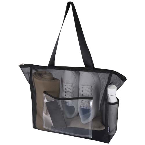Ta pojemna torba o pojemności 23 litrów, wykonana z siatki z poliestru pochodzącego z recyklingu, stanowi bardziej ekologiczny wybór bez uszczerbku dla praktyczności. Torba wyposażona jest w bezpieczną główną komorę zapinaną na zamek, kieszeń przednią i dwie kieszenie boczne, w których można przechowywać niezbędne rzeczy w porządku, natomiast gładkie uchwyty do noszenia (o długości 30 cm) zapewniają wygodę użytkowania. Przezroczysta konstrukcja z siatki nadaje jej schlud
