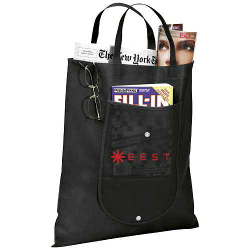 Składana torba z otwartą przegrodą główną i otwartą kieszenią z przodu. Plastikowe zamknięcie na zatrzask. Nadaje się do wielokrotnego użycia i stanowi świetną alternatywę dla plastikowych toreb. Długość rączki to 14 cm. Wymiary po złożeniu: Szer. 20 cm x wys. 11 cm. Torba wysyłana rozłożona, zapakowana na płasko.