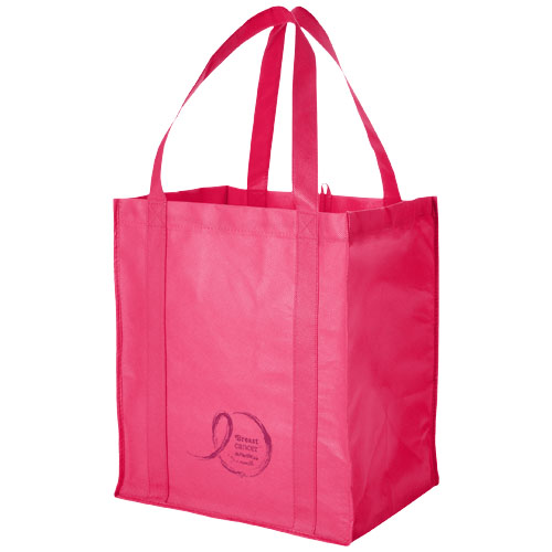 Obszerna torba na zakupy ze wzmocnionym dnem. Długość uchwytów 25,4 cm.