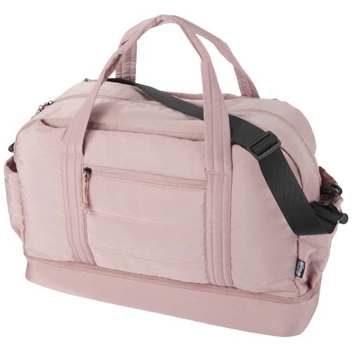 Torba podróżna Puffer łączy w sobie wyjątkowy design z najwyższej jakości materiałami pochodzącymi z recyklingu z certyfikatem GRS, dzięki czemu jest praktyczna i przydaje się na co dzień. Torba ma pojemność 30 litrów dzięki czemu idealnie nadaje się na krótkie wycieczki, na treningi na siłowni lub do codziennego użytku. Torba ta ma dużą, zapinaną na zamek komorę główną na ubrania i sprzęt, dolną komorę wyłożoną izolowaną folią PEVA, umożliwiającą oddzieleni