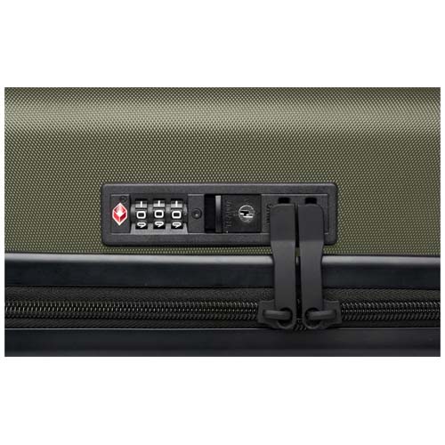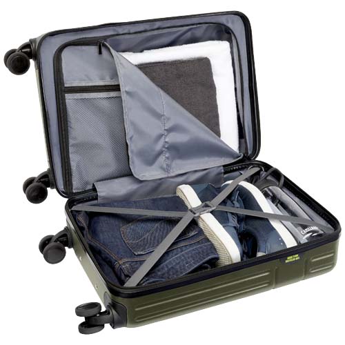 Twarda walizka na kółkach Rover o wysokości 51 cm, wyprodukowana z odpornych na uderzenia tworzyw sztucznych pochodzących z recyklingu i wyściółki RPET to produkt zarówno wysokiej jakości, jak i przyjazny dla środowiska. Posiada aluminiową ramę z podwójnymi rurkami, 4-kołowy mechanizm obrotowy 360 stopni, zintegrowany zamek szyfrowy TSA, wygodny uchwyt zapewniający komfort i wewnętrzne przegródki organizacyjne. Może być przewożona jako bagaż podręczny w większości główn
