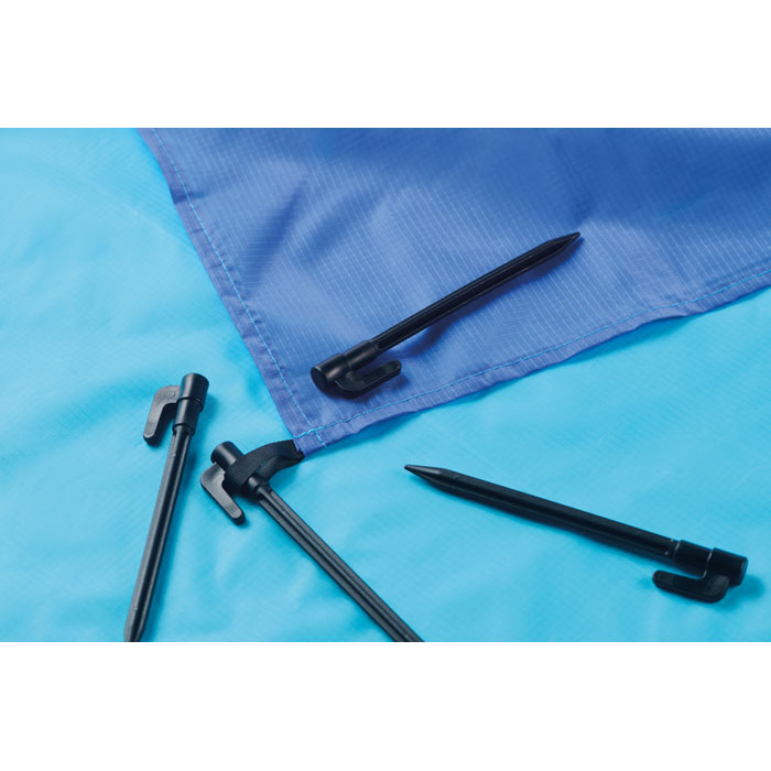 Lekka mata plażowa z poliestru 210T o wymiarach 200x210 cm z 4 czarnymi haczykami i torbą ze sznurkiem zapewnia komfort podczas plażowania i pikników. Reklamowa mata plażowa z nadrukiem full color to praktyczny i atrakcyjny gadżet reklamowy na plażę oraz gadżet promocyjny na urlop dla pracownika, klienta i firm.