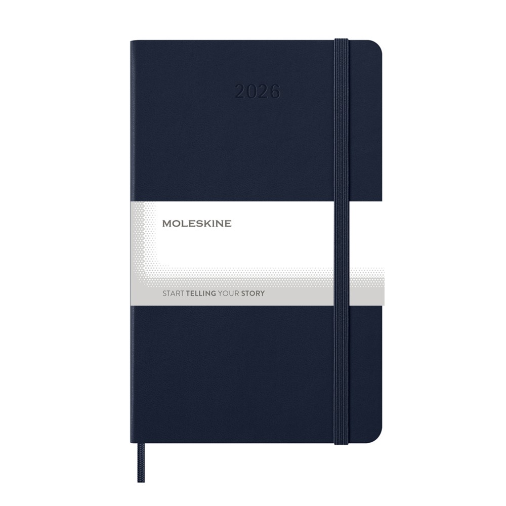 Kalendarz duży (ok. A5, large) MOLESKINE, twarda okładka, dzienny (400 str.), zakładka i elastyczna opaska do zamykania