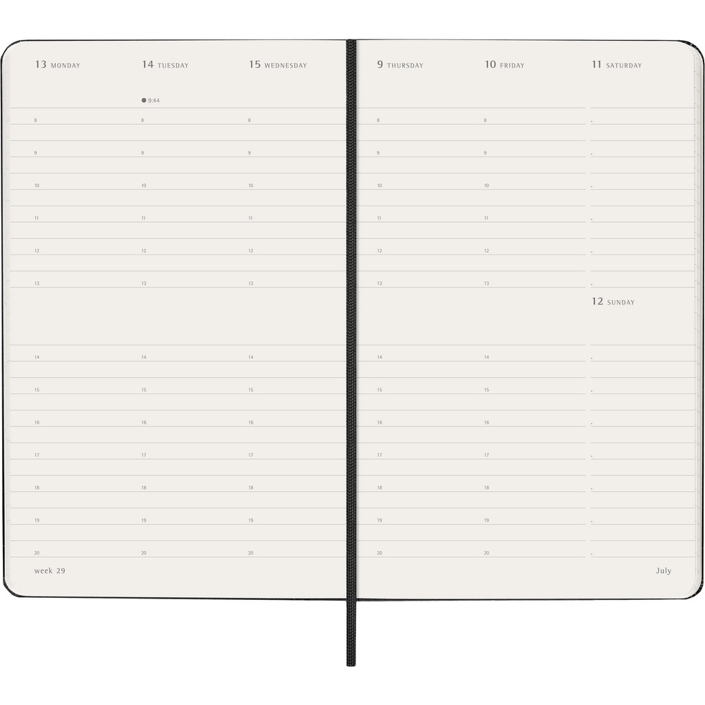 Kalendarz duży (ok. A5, large) MOLESKINE, twarda okładka, tygodniowy, wertykalny (144 str.), zakładka i elastyczna opaska do zamykania