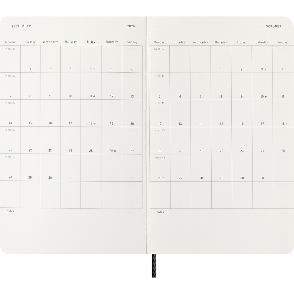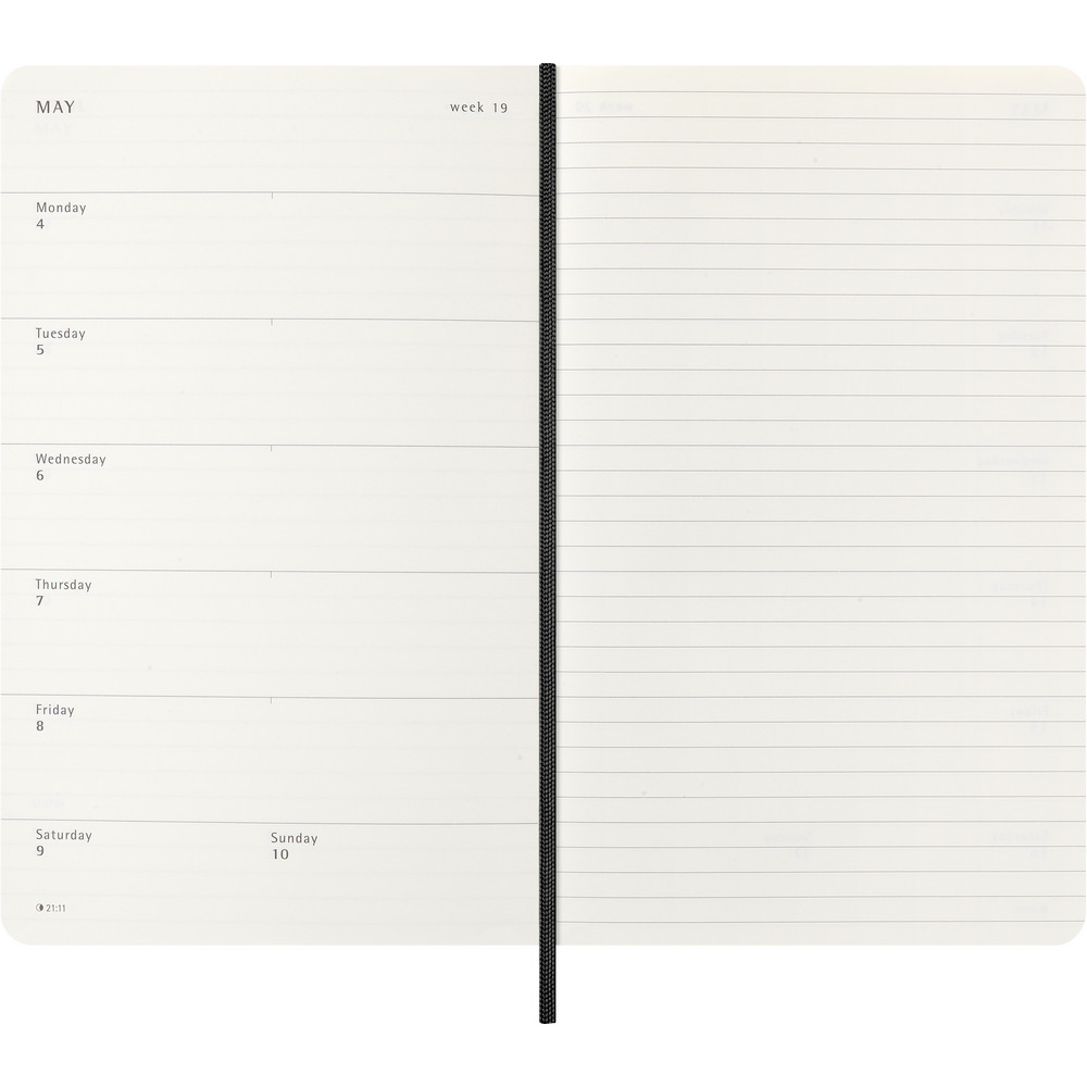 Kalendarz duży (ok. A5, large) MOLESKINE z notatnikiem, miękka okładka, tygodniowy (144 str.), zakładka i elastyczna opaska do zamykania
