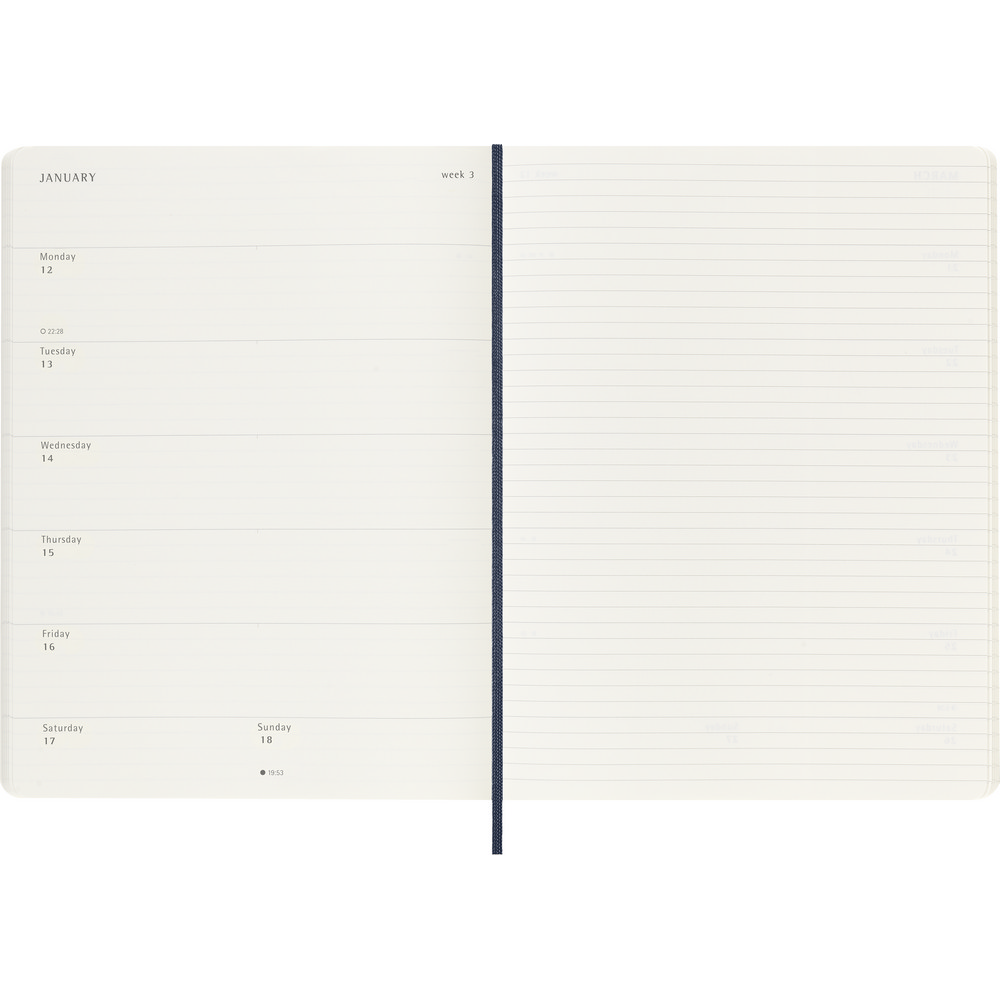 Kalendarz XL (ok. B5) MOLESKINE z notatnikiem, miękka okładka, tygodniowy (144 str.), zakładka i elastyczna opaska do zamykania