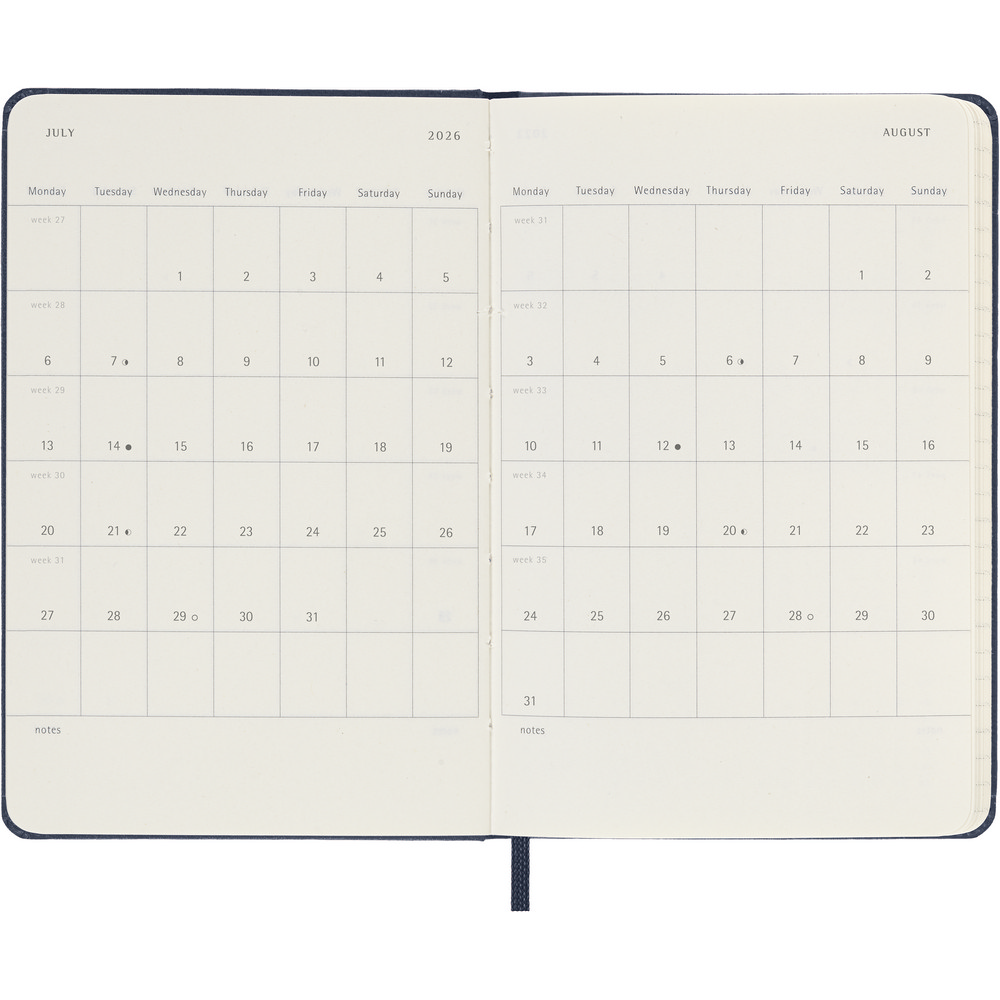 Kalendarz kieszonkowy (ok. A6, pocket) MOLESKINE, twarda okładka, dzienny (400 str.), zakładka i elastyczna opaska do zamykania