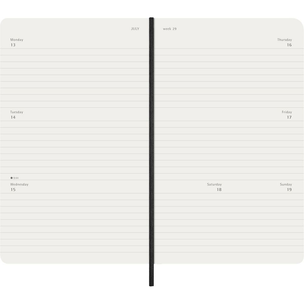Kalendarz duży (ok. A5, large) MOLESKINE, miękka okładka, tygodniowy, horyzontalny (144 str.), zakładka i elastyczna opaska do zamykania