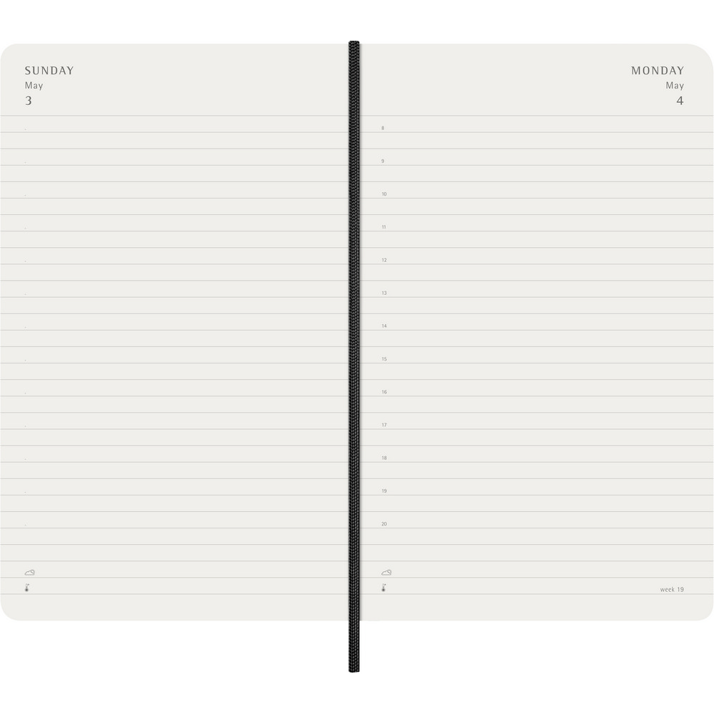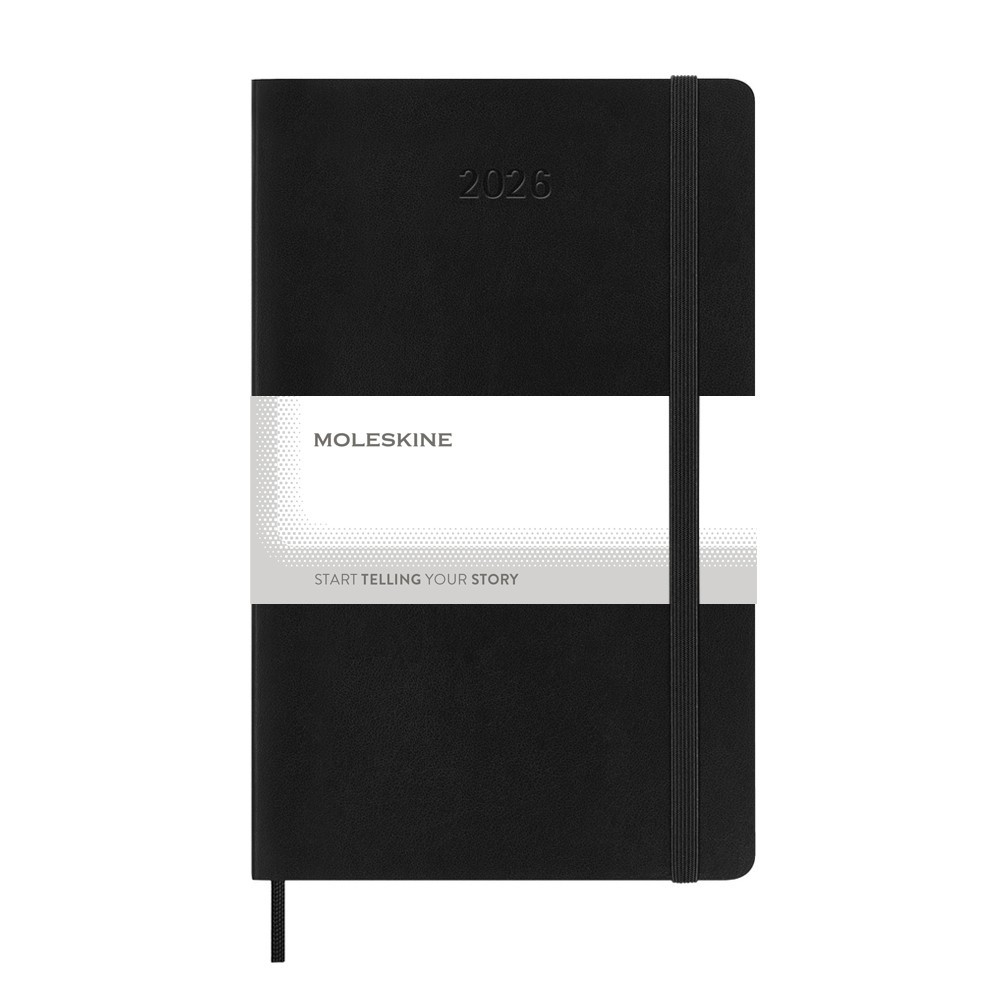 Kalendarz duży (ok. A5, large) MOLESKINE, miękka okładka, dzienny (400 str.), zakładka i elastyczna opaska do zamykania